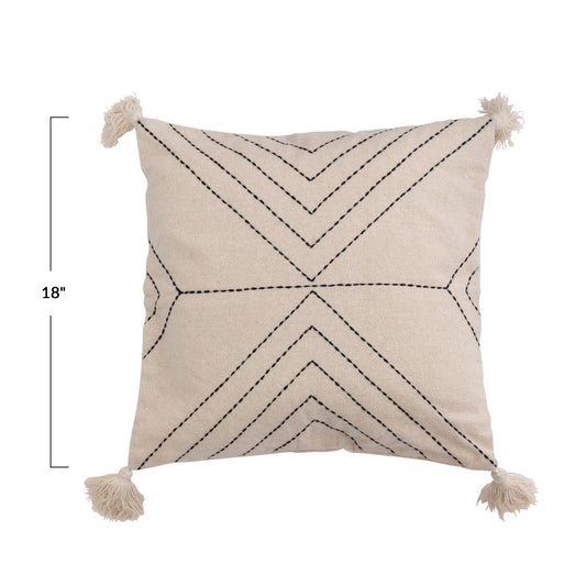 18" Cotton Blend Pillow w/ Embroidery & Tassels, polyester fill