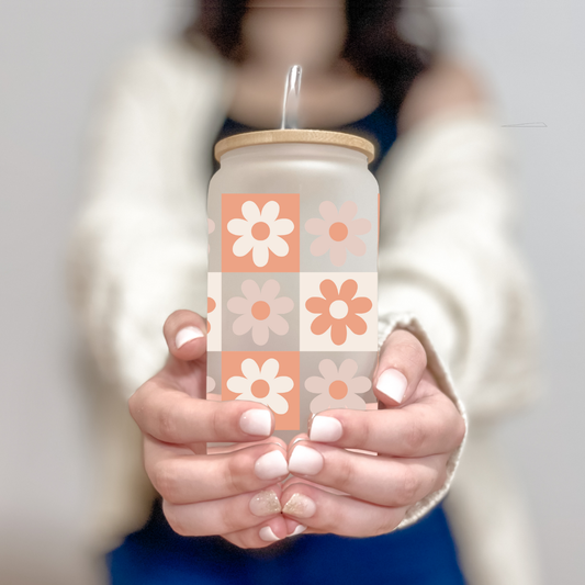 16oz Retro Daisy Glass Cup with Bamboo Lid