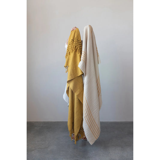 Woven Recycled Blend Throw with Fair Isle Sweater Pattern & Fringe