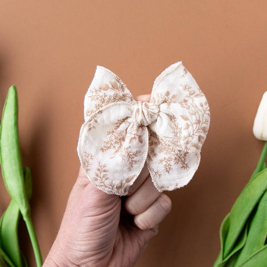Woven Cotton Lumbar Pillow with Bow, Natural & Navy Color