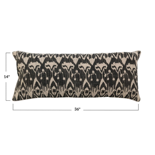 Woven Linen Lumbar Pillow w/ Ikat Print, Embroidery