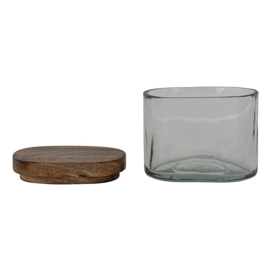Hand-Blown Glass Jar with Mango Wood Lid