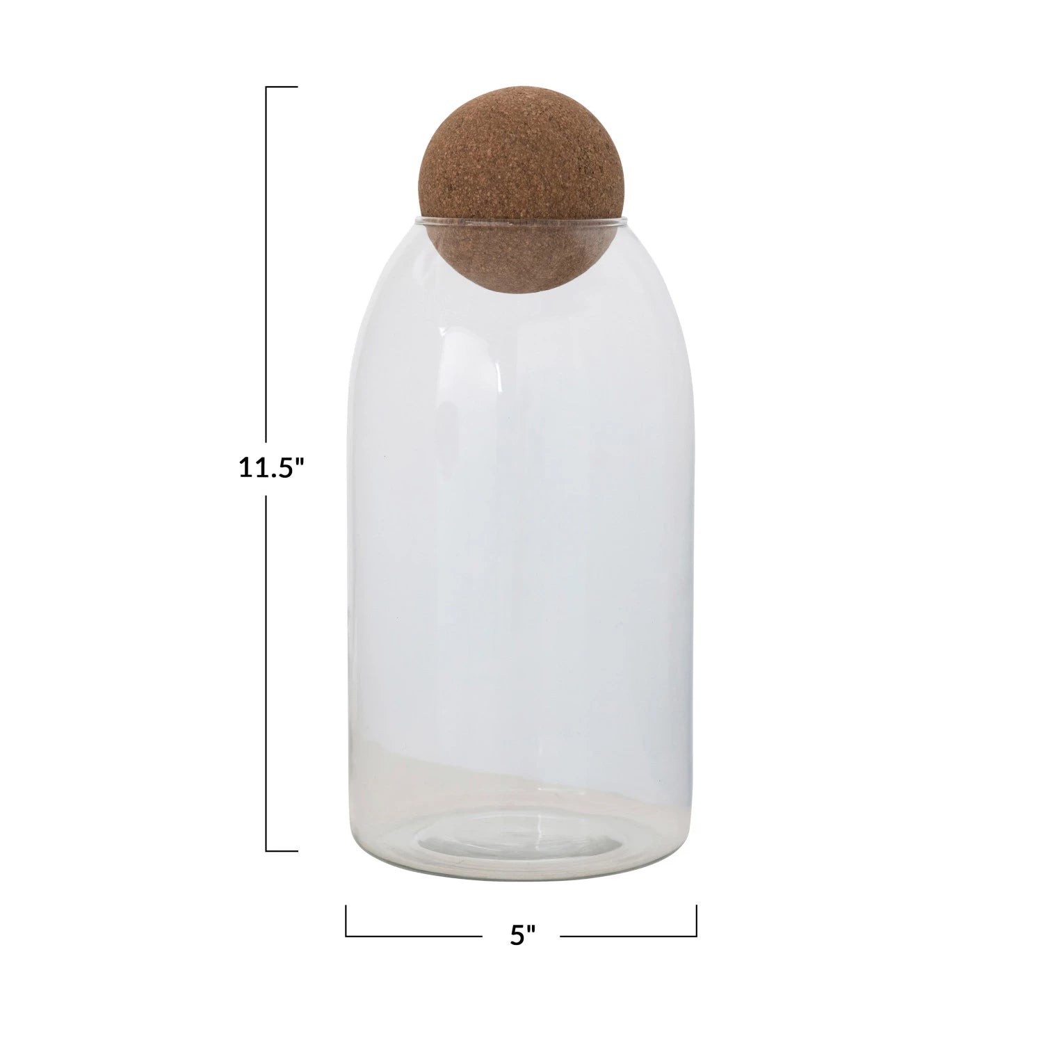 5" Round x 11-1/2"H Glass Jar w/ Cork Ball Lid