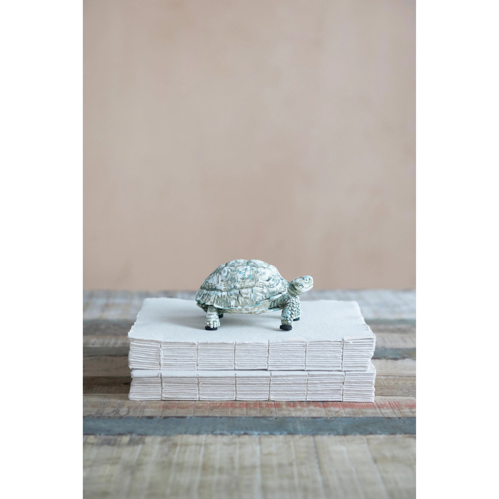 5"L x 3"W x 2-3/4"H Resin Turtle, Distressed Verdigris Finish