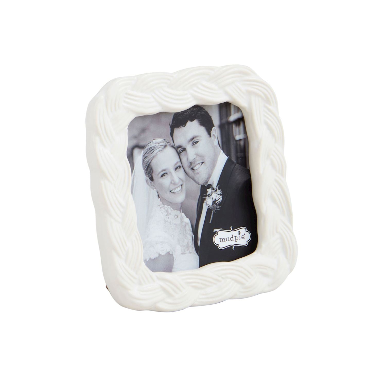 Stoneware 2 1/2" x 2 1/2" frame with braided texture. Easel back.