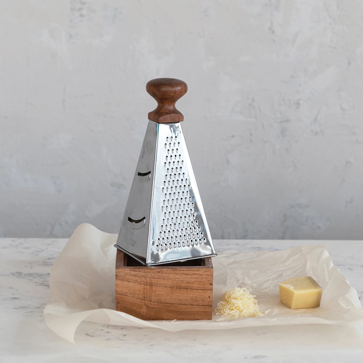 Stainless Steel Grater w/ Acacia Wood Handle & Base